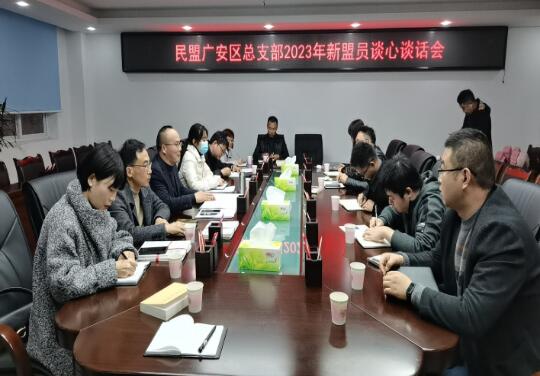 12月7日,民盟广安区总支部召开新盟员谈心谈话会,通过集体谈心谈话的方式,增强盟员的政党意识和责任意识。2023年新入盟的5名盟员及民盟广安区总支部全体委员参加会议,民盟广安区总支部主委罗明轩主持会议。